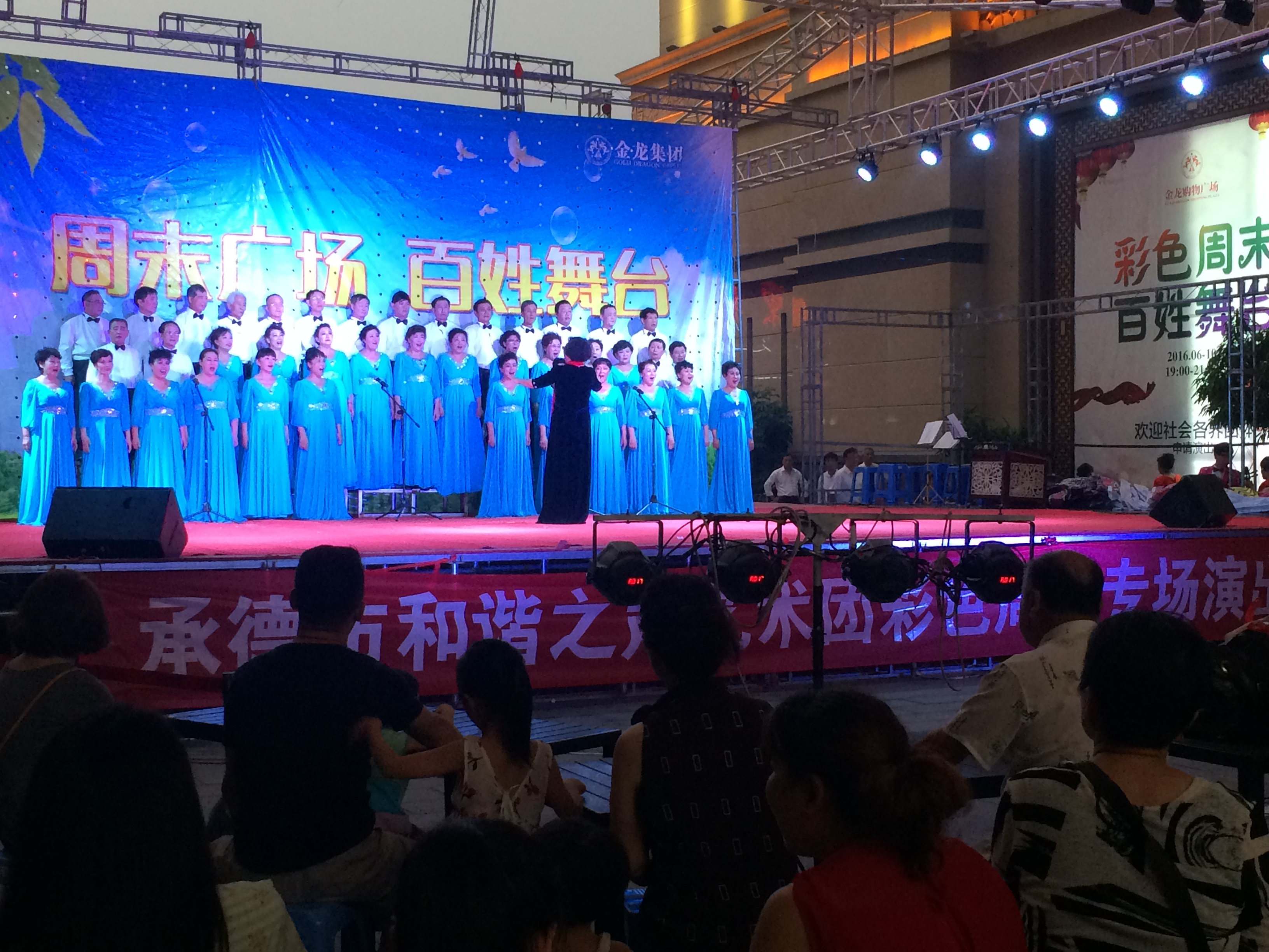 承德八县三区民间艺术家与音乐爱好者在金龙“周末广场 百姓舞台”上以精彩﹑热情﹑积极向上﹑自信饱满的面貌展现给观众面前。